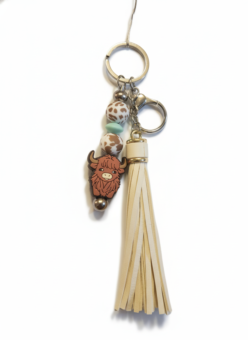 This collection offers a variety of stylish keychain designs, each featuring colorful tassels and decorative silicon beads. These keychains are perfect for adding a personal touch to your keys or bag.